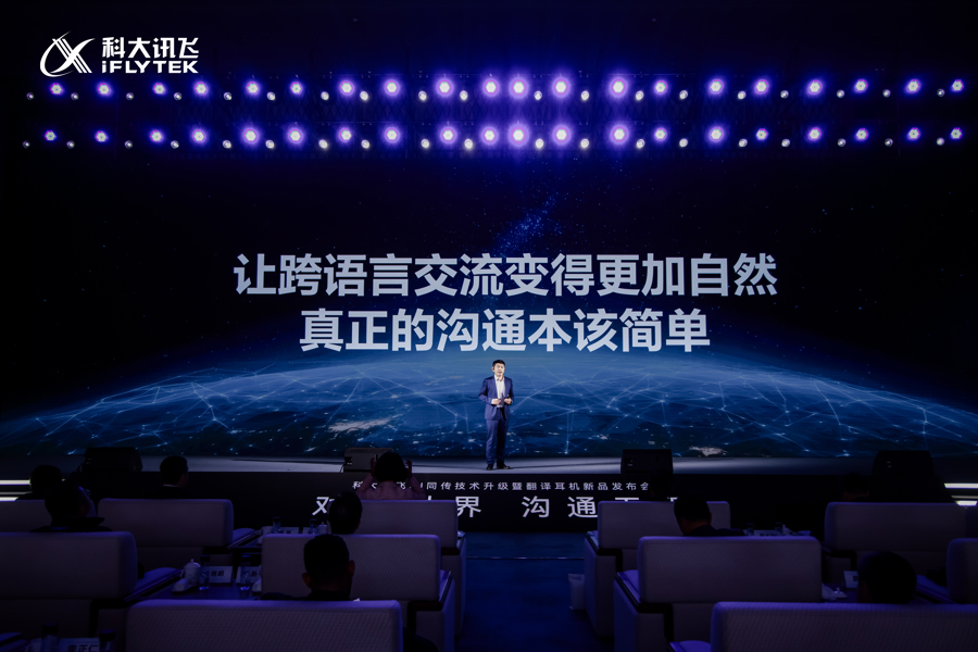 发布会上推出的新一代讯飞AI翻译耳机,率先搭载了最新的端到端语音同传技术,在线支持60种语言的同传互译,相比同类产品实现了更准确、更速度、更自然的翻译体验。